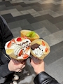 こんばんわ! ももかです みくちやんのブログにも乗っていましたが、 出勤前にクレープ食べてきました!😋 私は小さい頃から 安定のチョコバナナイチゴで🍫🍌🍓 みくちゃんは甘い系に生クリーム4倍盛り?と ツナピザチーズを頼んでいて私はビックリです😱 そんなに食べれるのか聞いたら いける!とか言うので2人で黙々と食べながら 出勤していたんですけど、 実は私おかず系のクレープ食べたことなくて クレープとして認めてなかったんですよね🤫 でもみくちゃんが1口くれたツナピザチーズが ヤバくて‼️‼️ホントに美味しすぎて ずっと美味しい美味しいって感動してたら みくちゃんがもうクドくなってきたから あげるよって言ってくれたので 甘いのと交互に食べて大満足💮💯 みくちゃんは生クリームに苦戦しながら ギリギリまで食べていました笑 おかず系アリだな、、、🐜 私のが普通のサイズで みくちゃんのが3?5?倍増しのやつです