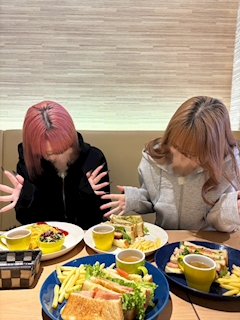 こんばんわ! ももかです めちゃ前のお休みにみくちゃと遊びに行きました! お揃いの服何か欲しいねって話してて 色違いのパーカーを買いました! 出勤の時はほとんど来て行ってます笑 その後はお腹空いたのでみくちゃんに連れられて 人生初のからふね屋に行きました!🥪 頼みすぎたしデザートも一緒にきちゃったから 机の上が超幸せでした💕 外で集まったから髪の毛も巻いてルンルンでした🎶 今気づいたけどデザートのパフェ写ってなかった笑
