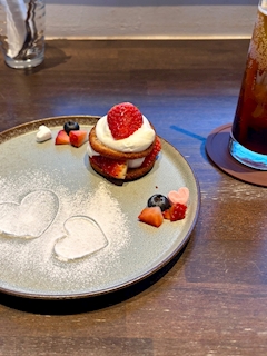 こんばんは! この前お友達とカフェに行きました🌿 季節限定のいちごのフィナンシェです🍓✨ めちゃかわいいし美味しかった!