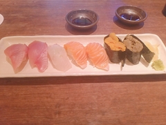 こんばんはー!!🌛✨ 今日の私は寒すぎてマフラーを巻いております💦それでも寒いのなんの……😭😭 末端冷え性なので指先が冷えて冷えて……😅😅ぜひぜひ暖めに来てくださいな✨ と、言うわけで今日のブログは!! またまた美味しい食べ物!!となっております😋 最近、美味しい食べ物を食べる機会が増えてものすごーく幸せなのですが普通の食事に戻れない気がしています🎶 寒すぎて絵文字も変ですね……😭直す余力すらない💦 これは……なんでしたっけな左から、まぐろ、まぐろ、いか、サーモン、サーモンウニ、かにの卵、だったはず!!🤔 初めてウニを食べましたが結構美味しい💕💕あと、かにの卵も結構美味しかったです🤤 好きな海鮮にランクインしちゃったなぁ✨ これもなんだったかなぁ……🤤ヒラメ??ブリ??🐟あ、ブリだった気がします!!🤔 めちゃくちゃ美味しかったんですよね!!これもー!!👍🏻💞 もう一度食べたいなぁ……🤤🤤ブリだったはず!! わさびもツーンとしすぎる訳でもないし、全部ものすごく美味しかったんですよねぇ🤤🤤 ところで寒すぎると眠くなってきませんか?? でも、眠い中寝ると命の危機を感じるので一生懸命起きておきます💦 今の私は寒すぎて寝れます、やばいです😱😱本当に本当に寒いので助けに来てね……😇👍🏻