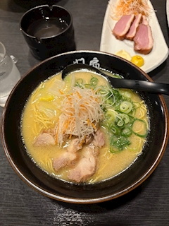 こんばんは!お久しぶりです😌 これは10月末の出来事です…😇 LUANAでは出前が頼めるんですけど、 その数あるお店の中に "門扇" っていう ラーメン屋さんがあるんです🍜 お店でれいちゃんも一緒にいたときに、 お客さんが出前をとって食べてらっしゃったんですけど 夜中っていう時間も相まって、 めちゃめちゃに美味しそうに感じたんです😭✨ もうそのときにれいちゃんに「今度行こ🥺」って れいちゃんとデートの予定をこじつけました✌🏻💕 この次の日お昼に暇だからカップラーメンを食べてて 私は"お腹だけ"アホなのでカップラーメンを食べながら 「お腹空いたからラーメン食べたいな🤔💭」 って思ってたんです…食べてるのに🥺 前日にしたれいちゃんとの約束を思い出して、 すぐにれいちゃんにお誘いのLINEをしたら 快くOKしてくれました👌🏻💕 私は多分定番のメニューを頼んで、 れいちゃんはお店でも「食べたい!」って言ってた 坦々麺を頼んでました🔥 実は私坦々麺食べたことないから、 また今度れいちゃん連れ出して坦々麺食べに行こ🤭 ラーメン以外のトマトも鴨も鶏皮餃子も 全部美味しかった〜!! 普段中々ラーメン屋さん行くことないけど、 またそろそろ行きたいな😌💭 この写真食べる前に撮ってると思ってたけど よく見たらなんか鴨ちょっと減ってるから、 我慢できなくて先食べてたのがわかる😂 れいちゃんの坦々麺も盗撮しましたよ📸